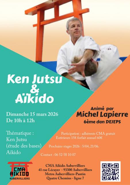 Stage de Michel Lapierre : ken-jutsu et aïkido au CMA le 15 mars 2026.
